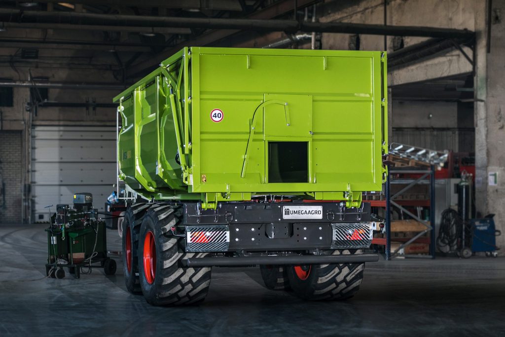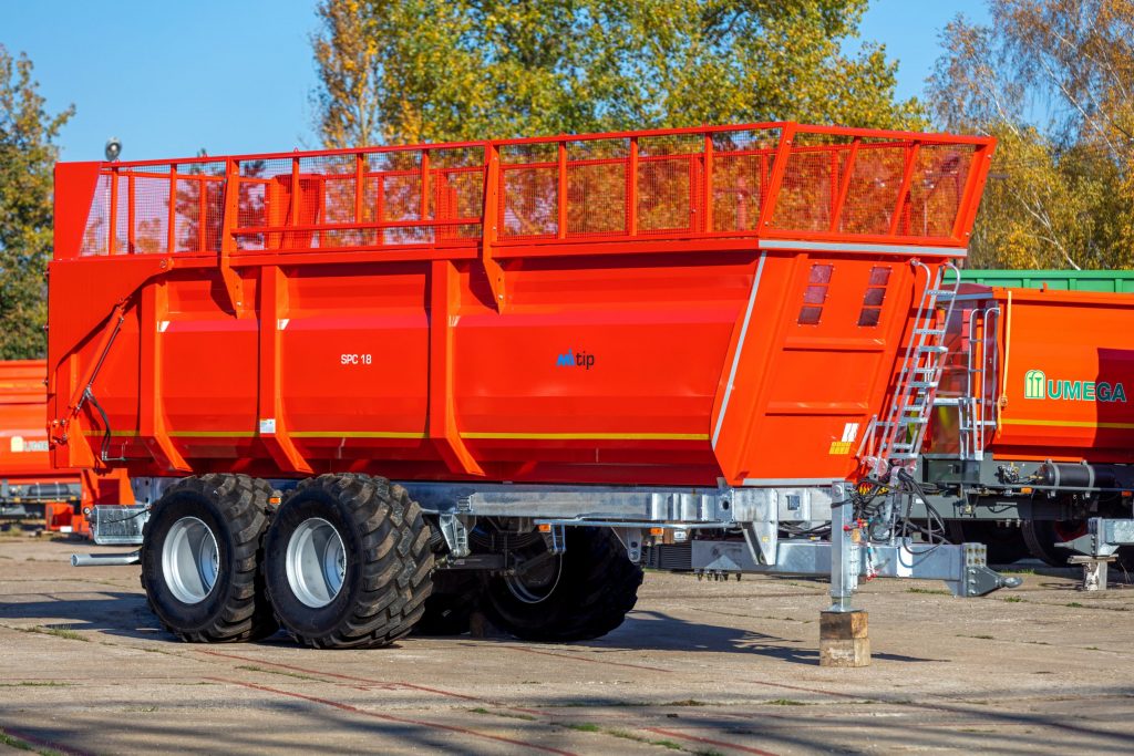 • Hinterkippvorrichtung, Monocoque-Auflieger mit hydraulisch betriebener Hinterseite.